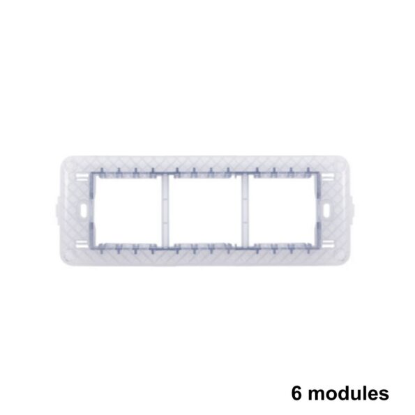 Désignation Porte module apparent 6 modules Format : Plaque 6 modules Type de pose : Apparent Type de Fixation : Par vis