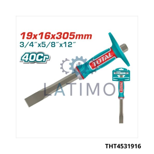 Taille : 16 × 305 mm – format adapté pour les travaux de précision Matériau : acier 40Cr – grande résistance et longévité Traitement thermique – pour une performance renforcée Revêtement : poudre limpide – finition protectrice et durable Poignée : design unique – meilleure ergonomie et confort Utilisation : travaux de maçonnerie, burinage, taille de pierre Emballage : cintre en plastique – rangement pratique