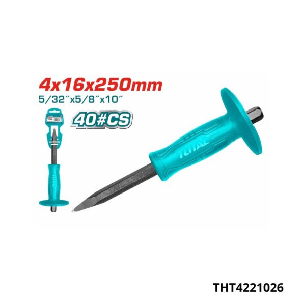 Total burin pointu tht4221026 : Tour de tête : 4 mm Taille de la poignée : 16 mm Longueur : 250 mm