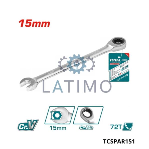 Taille : 15 mm Longueur : 200 mm Matériau : acier Cr-V (chrome-vanadium) Finition : chromée mate Emballage : carte en papier