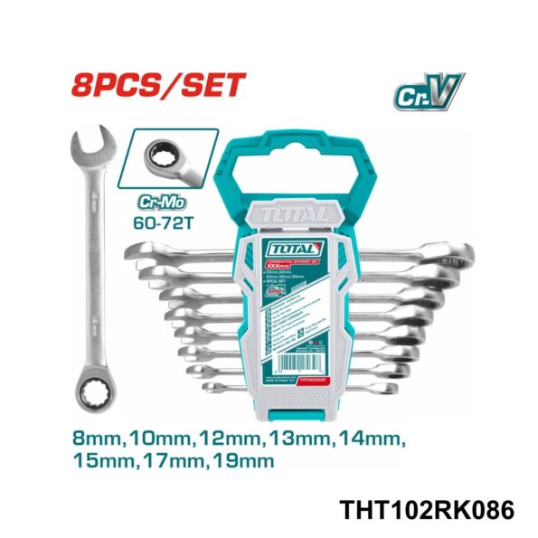 Jeu de 8 clés à cliquet Cliquet Cr-Mo de haute qualité Taille : 8-19 mm 8mm, 10mm, 12mm, 13mm, 14mm, 15mm, 17mm, 19mm Finement poli, CR-V