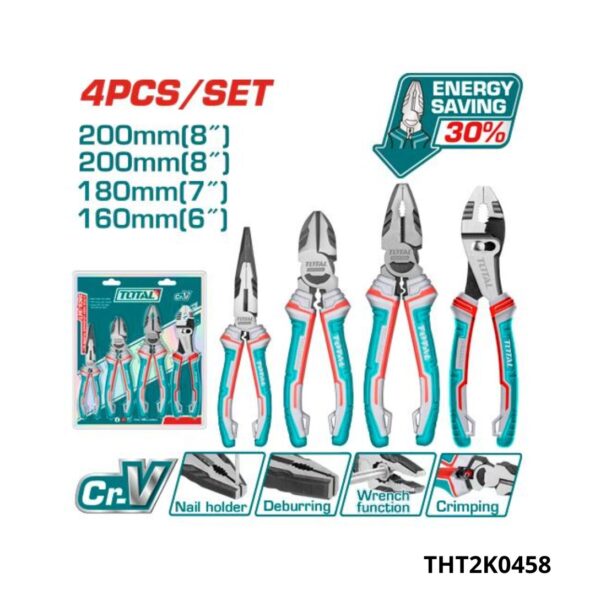 Matériau Cr-V Traitement de surface Finition noire et polie Matériau de la poignée TPR trois couleurs Composants de l’ensemble 4 pièces Inclus 1x pince mixte à effet de levier élevé de 8″ 1x pince coupante diagonale à effet de levier élevé de 7″ 1x pince à bec long à effet de levier élevé de 6″ 1x pince à joint coulissant de 8″