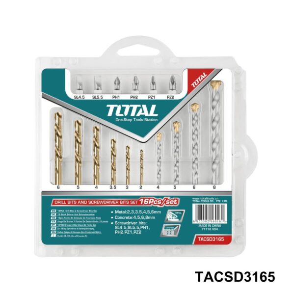 Jeu de 16 forets et embouts de tournevis 6 forets hélicoïdaux HSS, TAILLE : 2, 3, 3,5, 4, 5, 6 mm 4 forets à maçonnerie, TAILLE : 4, 5, 6, 8 mm Embouts de tournevis 6PCS 25mm SL4.5, SL5.5, PH1, PH2, PZ1, PZ2 Emballé par double blister