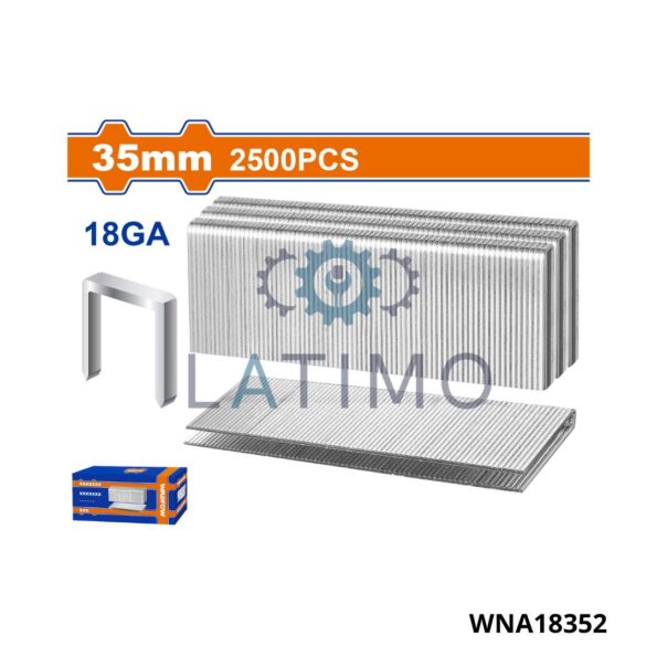 Taille des agrafes : 35 mm Boîte de 2 500 pièces Convient pour WBN2540 Ga18, 1,25 x 1,0 mm Couronne des agrafes : 5,7 mm
