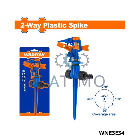 Arroseur pulsé en plastique avec piquet en plastique à 2 voies Tête et piquet d’arrosage en plastique résistant aux chocs Jet réglable de 20° à 360° Couverture d’arrosage jusqu’à 4 874 pieds carrés