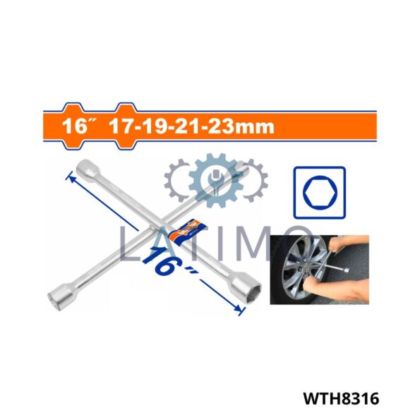 Longueur : 16″ Taille de la douille : 17x19x21x23mm Matériau : acier au carbone CK45 Traitement thermique, chromé La conception en croix offre un effet de levier et un couple supplémentaires