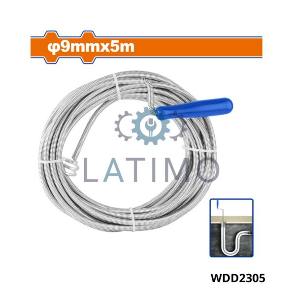 Longueur : 5m Acier à ressort plaqué entièrement flexible Diamètre du ressort : Ø1,9*Ø9mm Avec poignée en plastique Avec crochet en « »S », zingué Facile à utiliser et pratique Bobine à ressort conçue avec une grande flexibilité pour offrir une meilleure capacité de nettoyage Solide et durable, pas facile à casser lors du nettoyage d’un petit tuyau