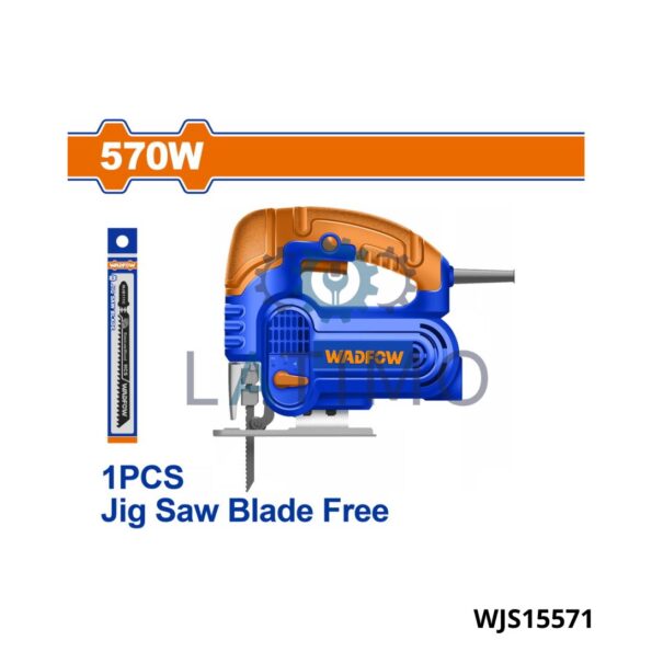 Tension : 220-240 V~50/60 Hz Puissance d’entrée : 570 W Vitesse à vide : 800-3 000 tr/min Capacité de coupe : Bois : 65 mm Acier : 8 mm Vitesse variable Fonction pendulaire à 4 niveaux Avec une lame de scie sauteuse